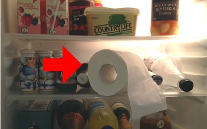 Lấy 1 cuộn giấy vệ sinh khô, đặt ở bất kỳ ngăn nào trong tủ lạnh, rồi đóng cửa lại.