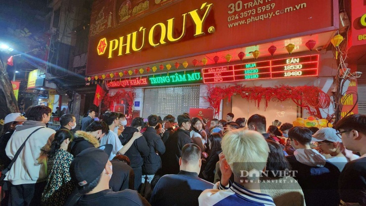 Ghi nhận của PV Dân Việt thời điểm 5 giờ sáng ngày 26/2 (mùng 10 tháng Giêng), đông nghịt người dân đã tới xếp hàng mua vàng tại “phố vàng” Trần Nhân Tông (Hà Nội). Trong đó, nhiều người 21 giờ hôm trước để xếp hàng chờ mua vàng.