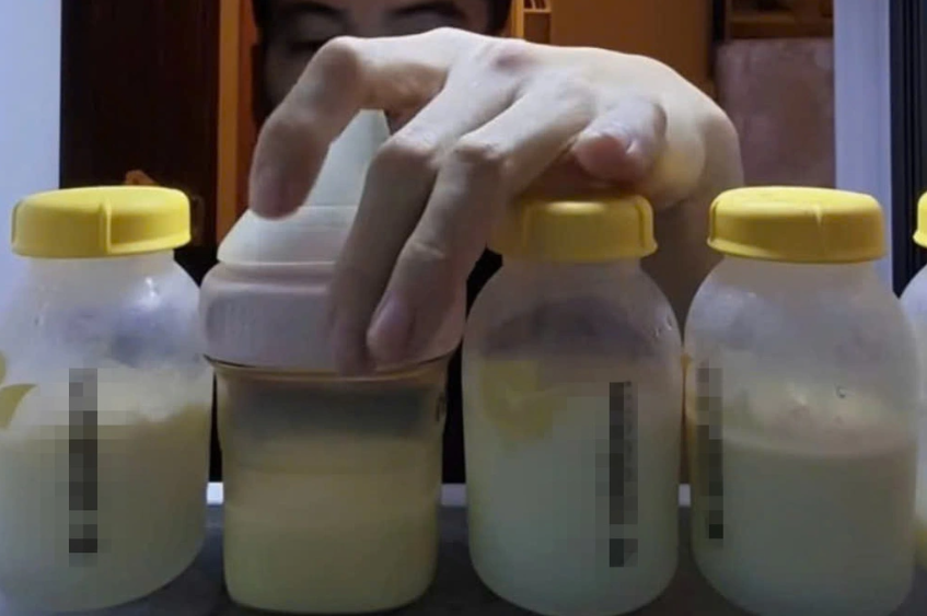 Sữa mẹ sau khi vắt ra cần được bảo quản đúng cách để tránh nguy cơ nhiễm khuẩn (Ảnh cắt từ clip).